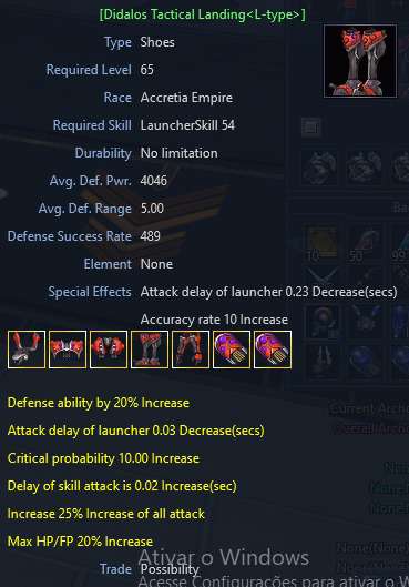 "Esta arma s? pode ser talicada com cristal de talicas. Preste bem aten??o na hora de talicar. Voc? pode combinar 50 cristais de talicas e a arma. no her?i da sua race ela so falha n?o reseta n?o quebra