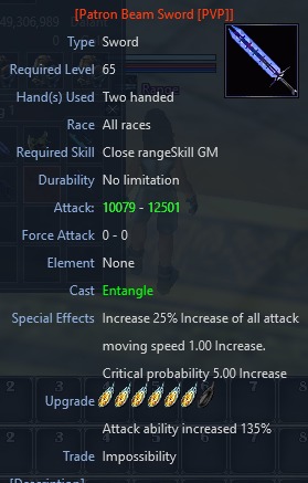 "Esta arma s? pode ser talicada com cristal de talicas. Preste bem aten??o na hora de talicar. Voc? pode combinar 50 cristais de talicas e a arma. no her?i da sua race ela so falha n?o reseta n?o quebra